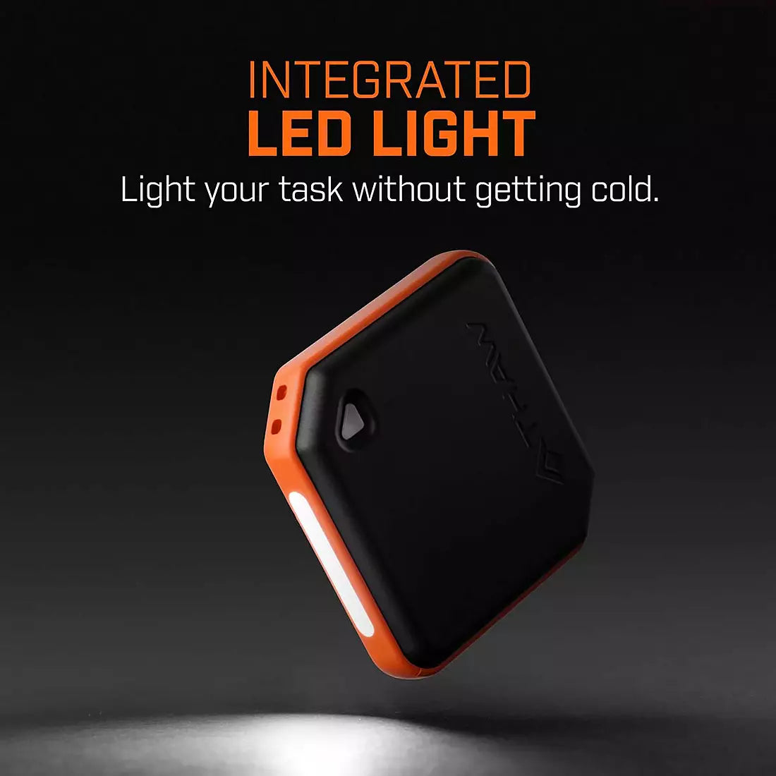 Cold hands don't have to slow you down. The THAW 2K Rechargeable Hand Warmer delivers warmth exactly when you need it—heating to 113°F with a full 4-hour runtime per charge. Its double-sided design warms your entire grip, while the one-button interface keeps operation simple. The 2,000mAh lithium-ion battery recharges via USB-C, and the integrated LED light lets you work hands-free without sacrificing warmth. Pocket-sized and built for outdoor enthusiasts, hunters, and anyone who refuses to let winter conditions dictate their day.