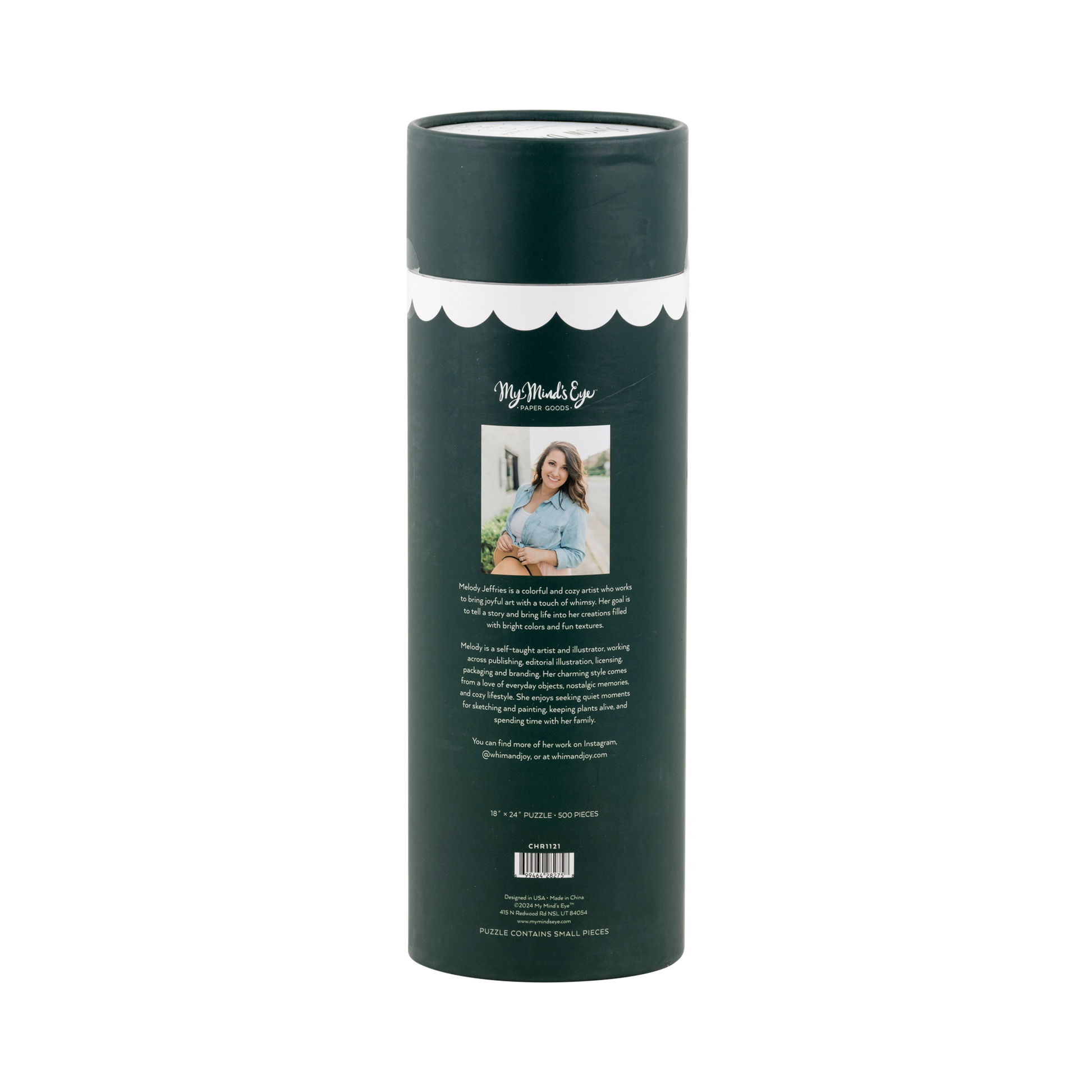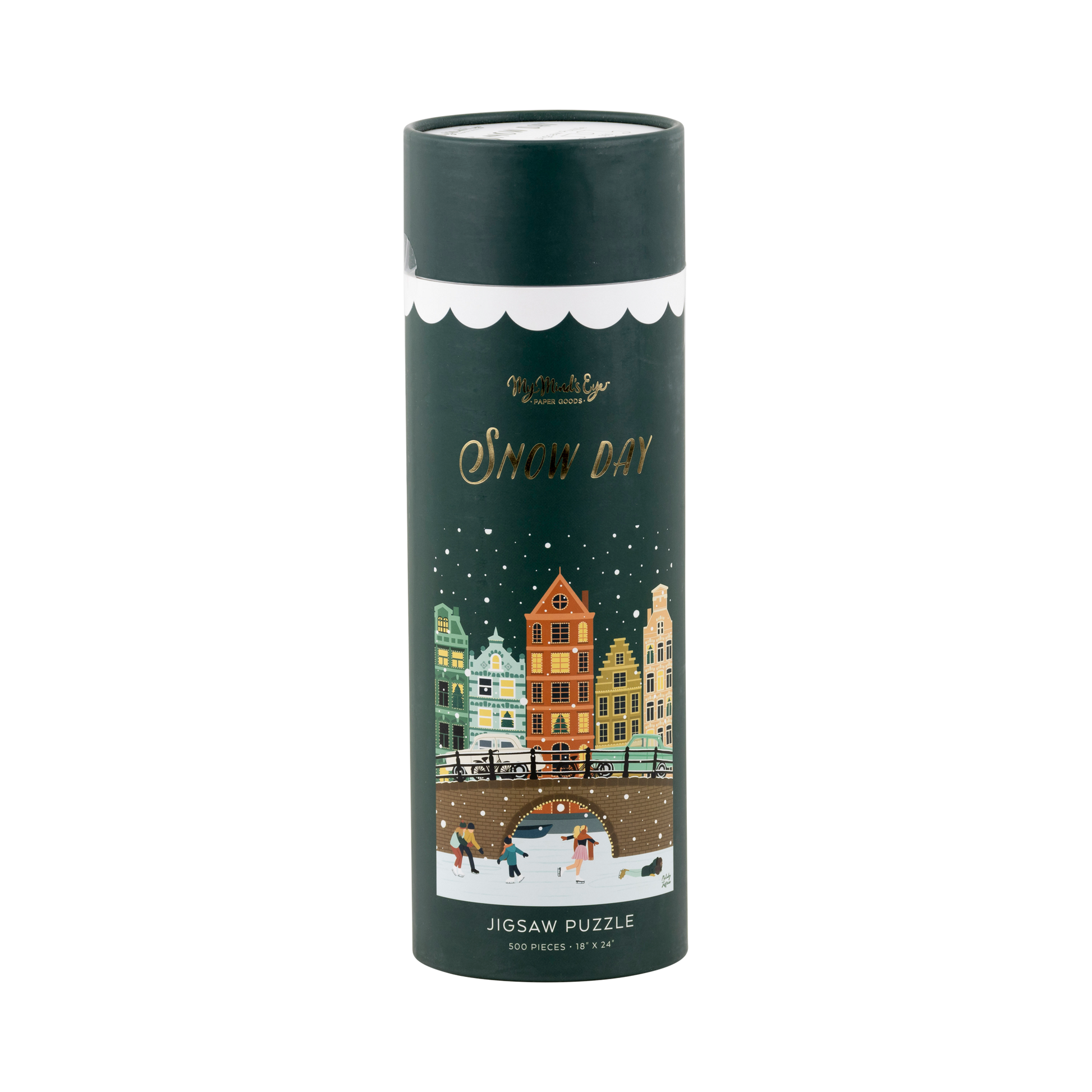 Get ready to skate into the holiday spirit with our Snow Day Winter Puzzle! Featuring a charming winter scene of skating on the canal, this puzzle is perfect for cozying up on a snowy day. Piece by piece, watch the scene come to life and bring joy to your winter days. Featured artwork from Melody Jeffries * chipboard jigsaw puzzle * 500 pieces * finished puzzle size is 18" x 24"