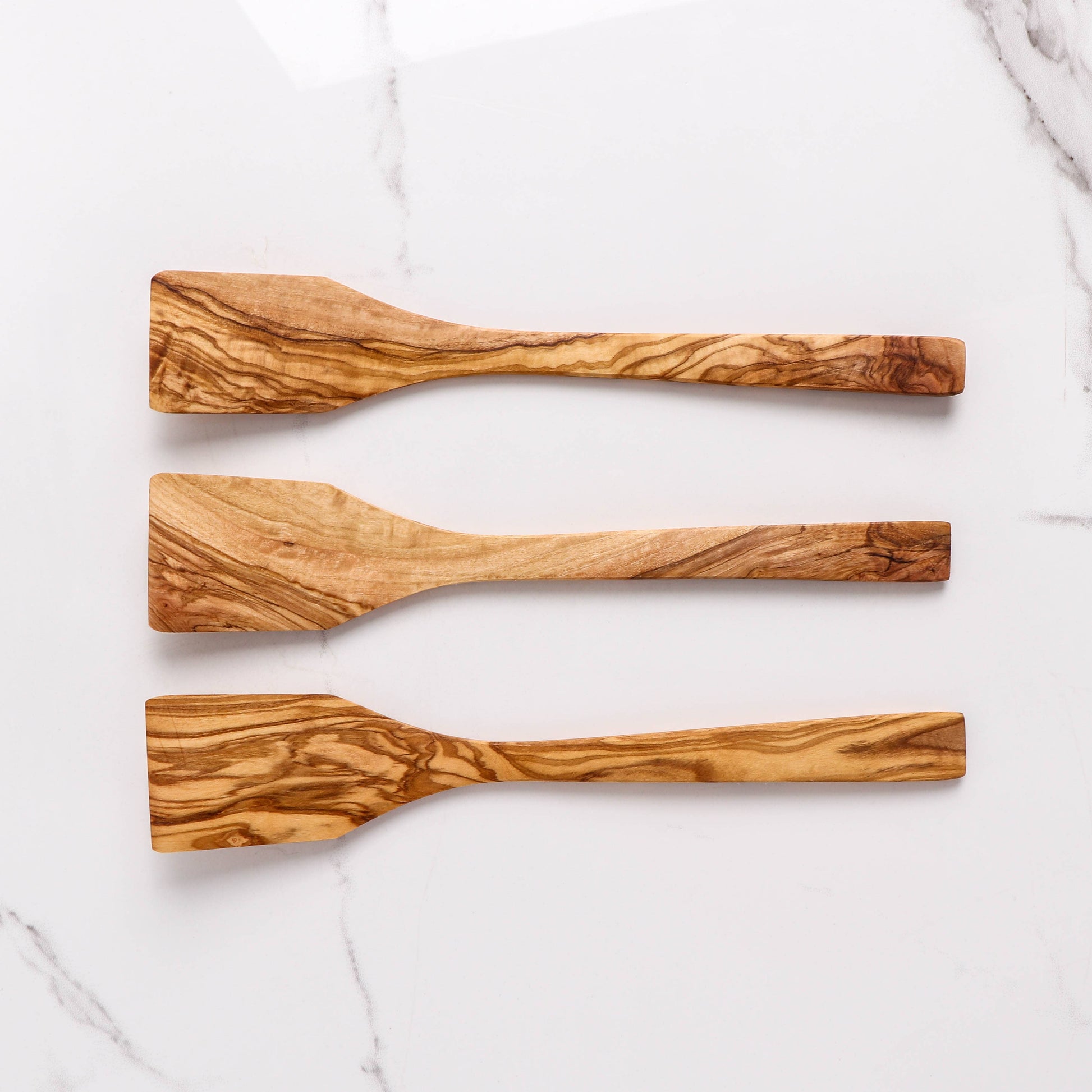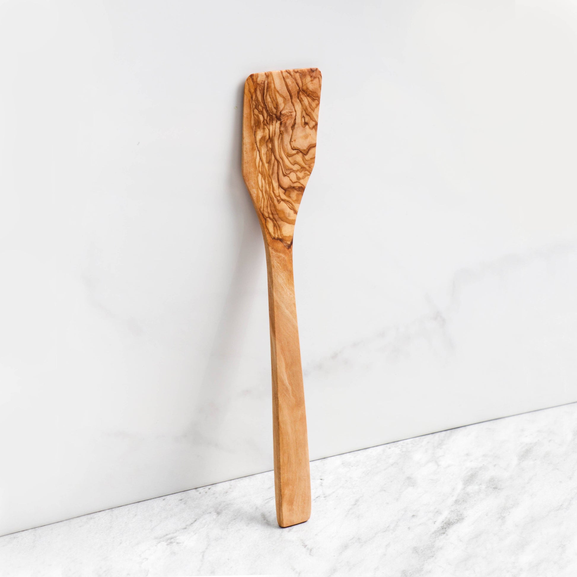 Each turner is carved by hand, showing the beautiful, unique olive wood grain. Designed to be gentle on cookware while delivering practical performance in the kitchen.