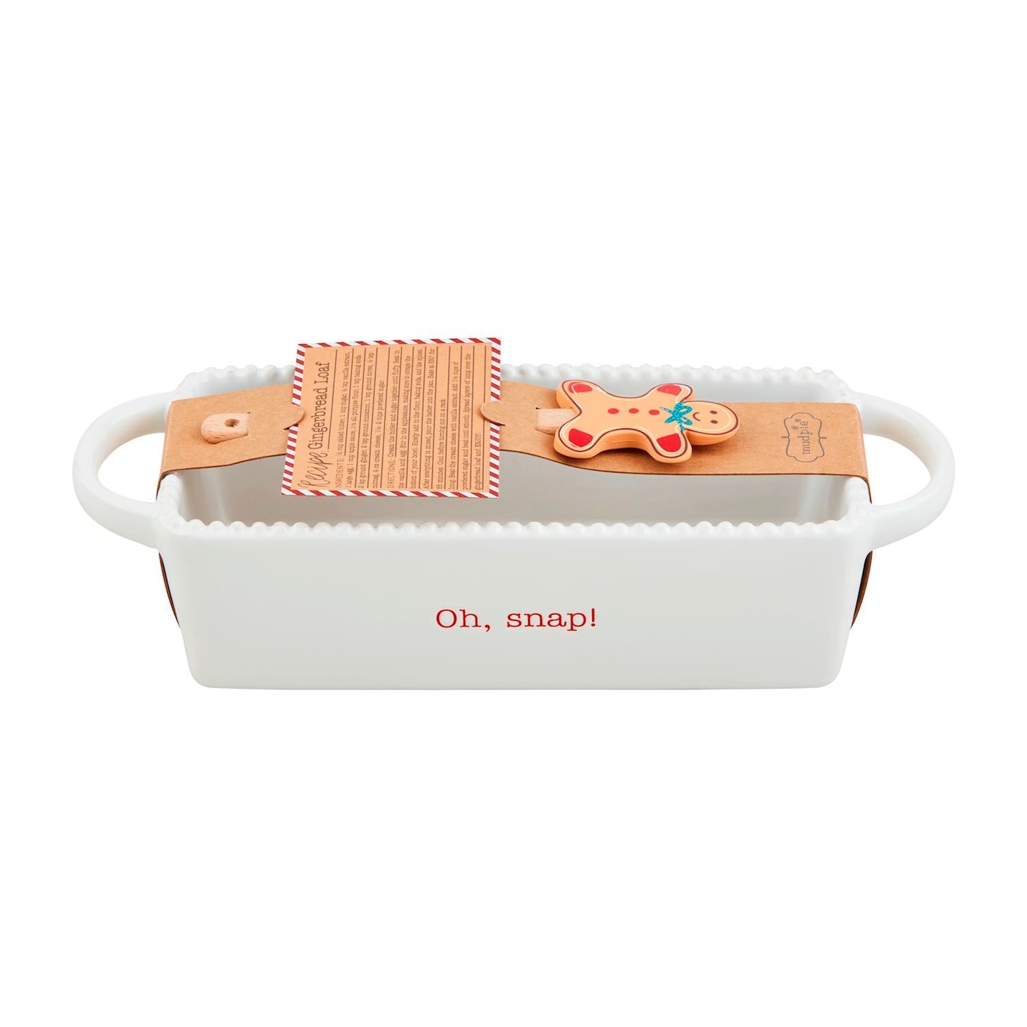 This expert-crafted 3-piece Gingerbread Loaf Pan Set includes a ceramic loaf pan with charming in-mold gingerbread men designs, offering both durability and festive detail. The set also provides a wood and silicone spatula, ensuring precise mixing and easy batter scraping. Included is a kraft recipe card to inspire your perfect gingerbread creation. Ideal for bakers seeking quality tools and seasonal style in one complete package.