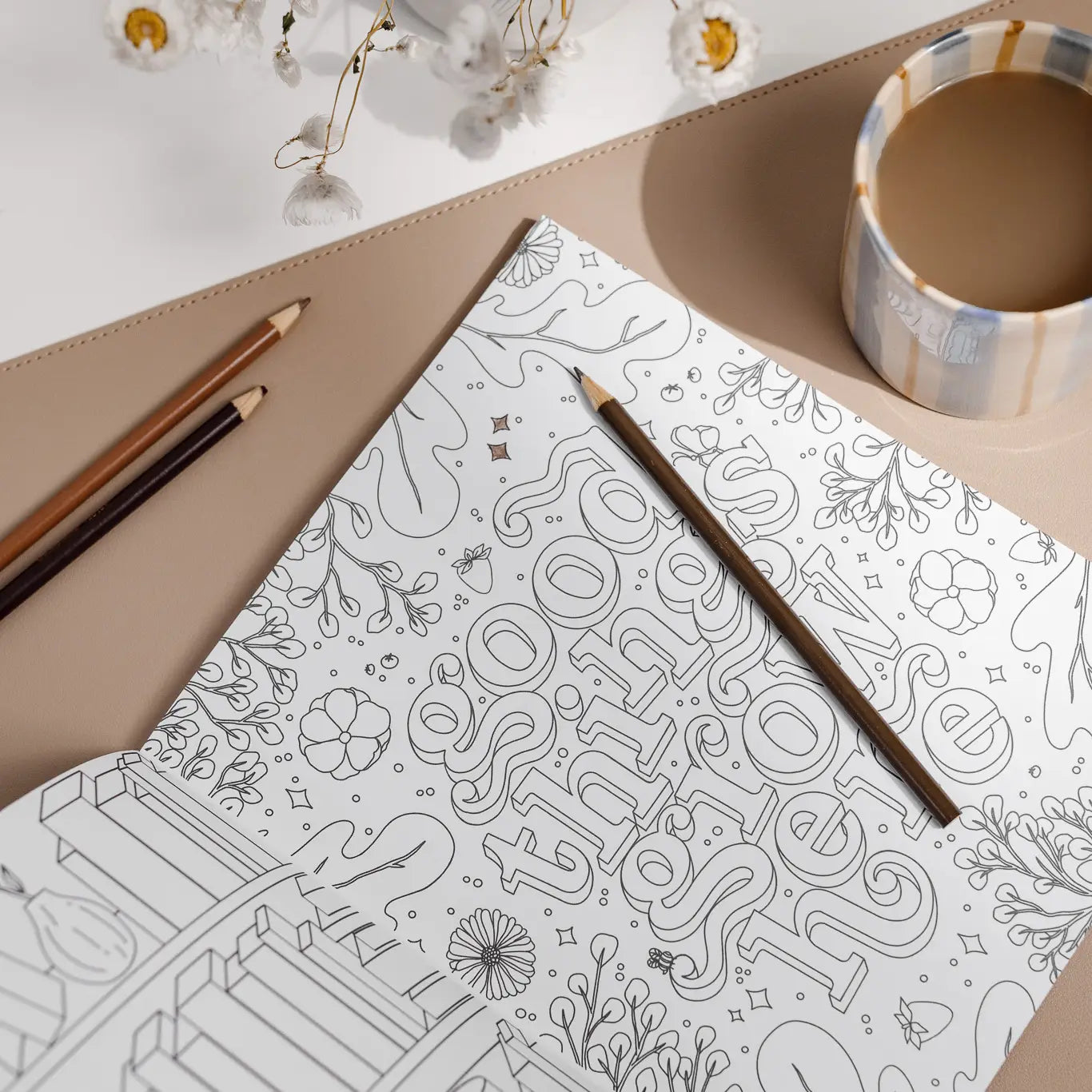 A motivational, hand lettered coloring book for adults—perfect for gifting, display tables, and impulse buys.