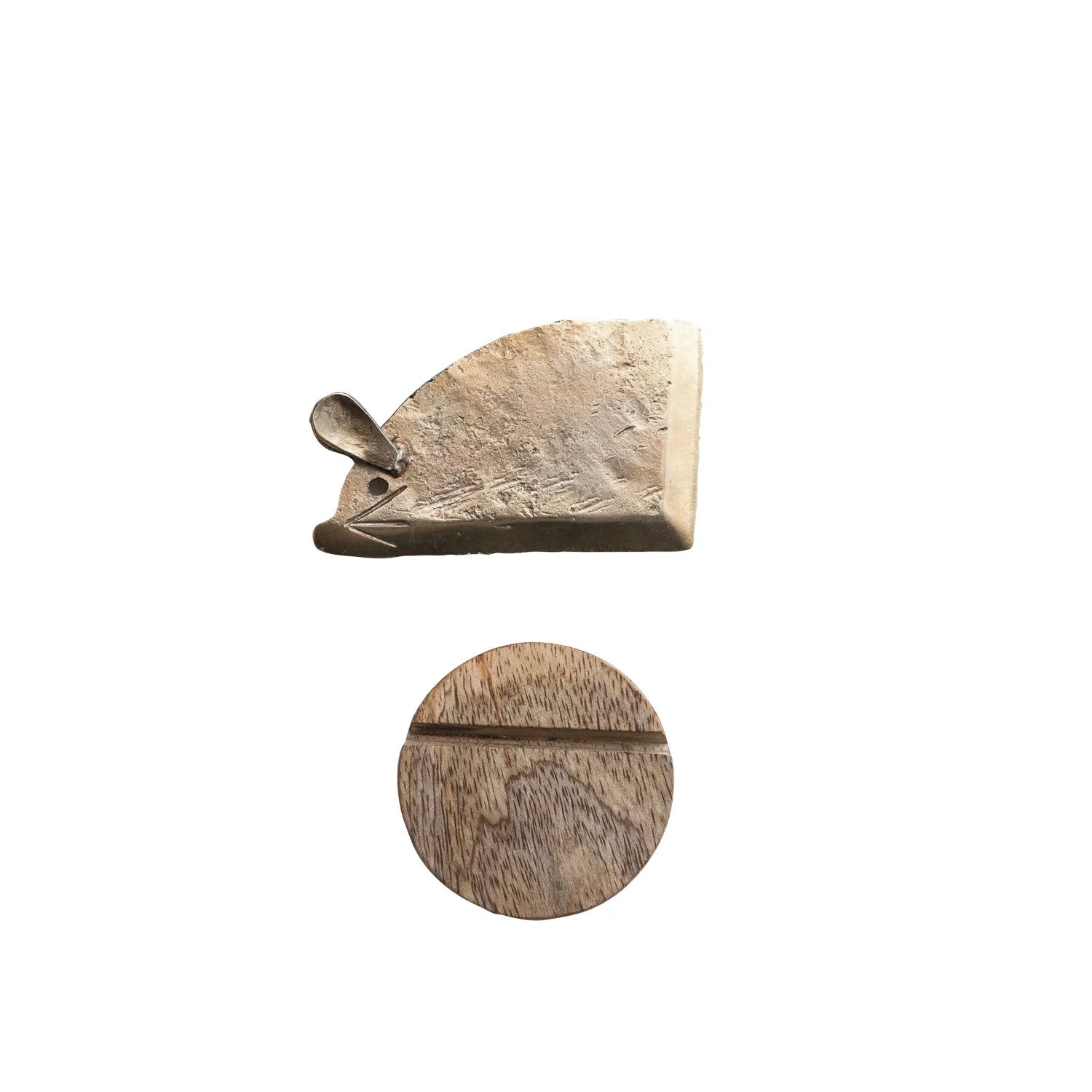 Hand Forged Metal Mouse Shaped Cheese Knife w/ Mango Wood Stand