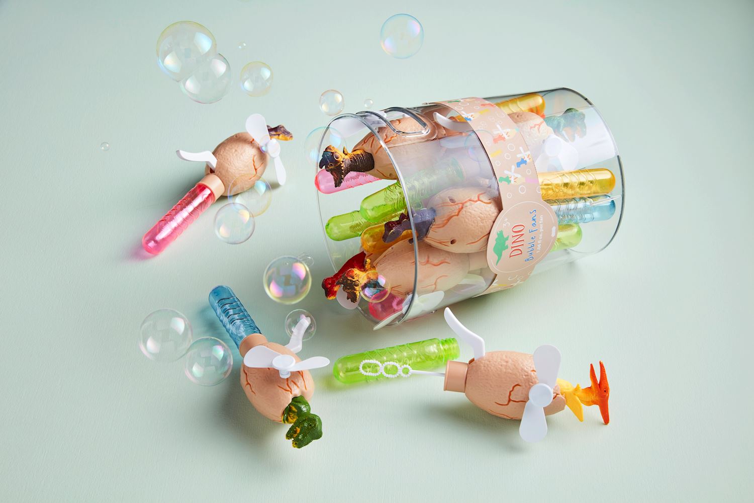 The Light Up Dino Bubble Fan combines a fun dinosaur design with bubble-blowing action, perfect for children ages 3 and up. It includes bubble solution and is packaged in a clear acrylic display bucket for easy storage and display. The style will be randomly selected at shipping, adding an element of surprise to this engaging toy. We will choose style at shipping.