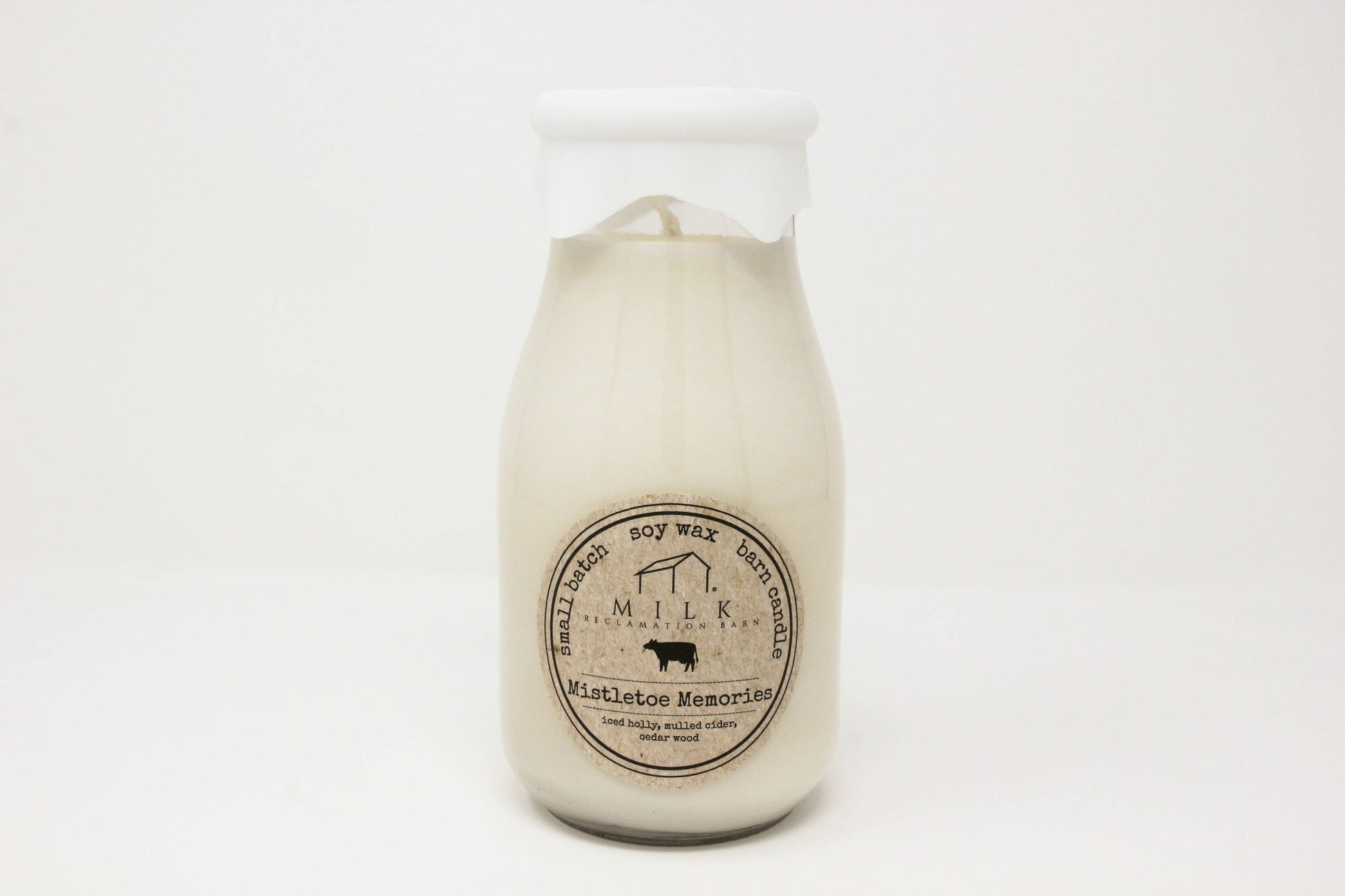 Milk Bottle Candle Mistletoe Memories (Holly, Cider, Cedar)