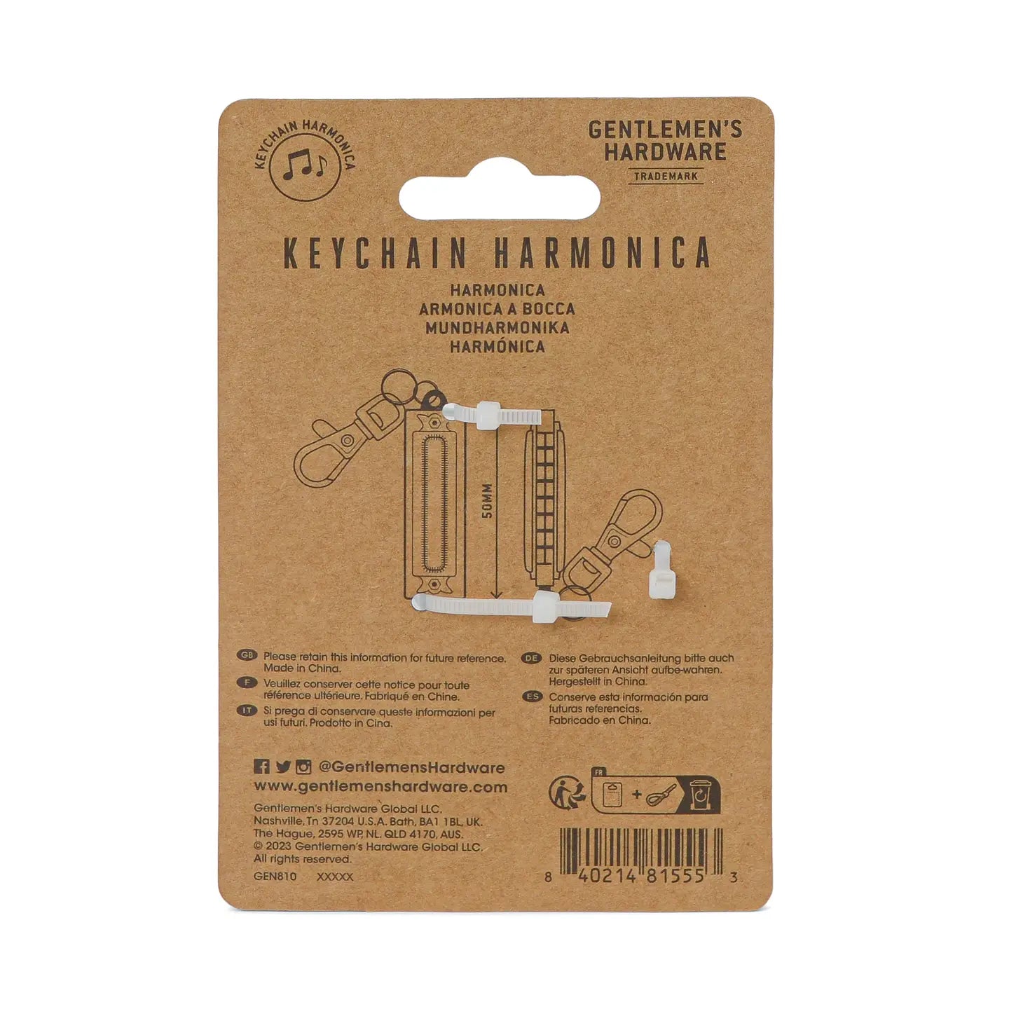 Make melodies on-the-go with this mini Harmonica in stainless steel featuring an Easy-attaching keychain. Product size: .5”w x 1.9”h Backer card size: 3.5”w x 5.3”h