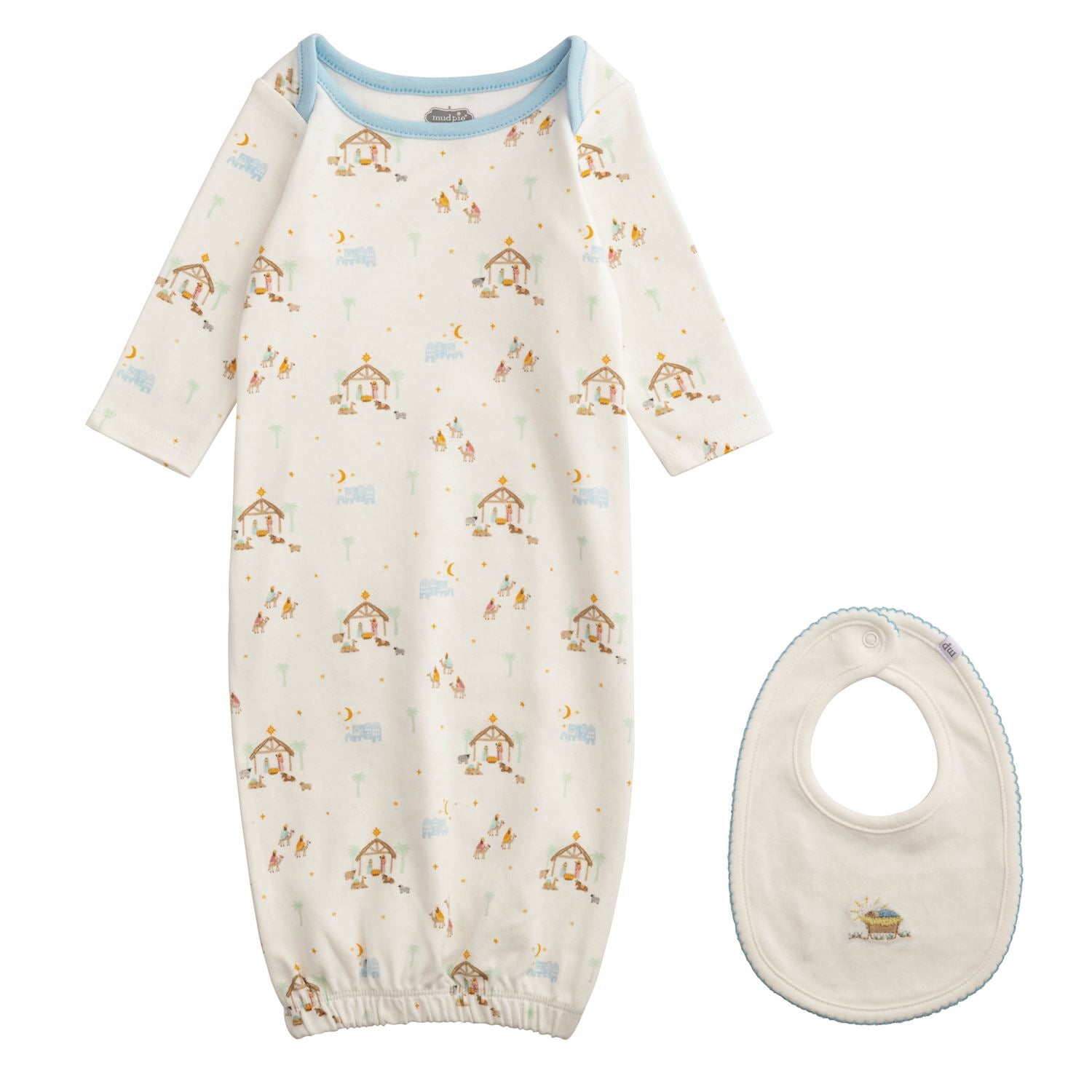 Crafted from soft knit bamboo fabric, this infant gown features a distinctive coconut wood button placket for secure fastening and natural aesthetic appeal.