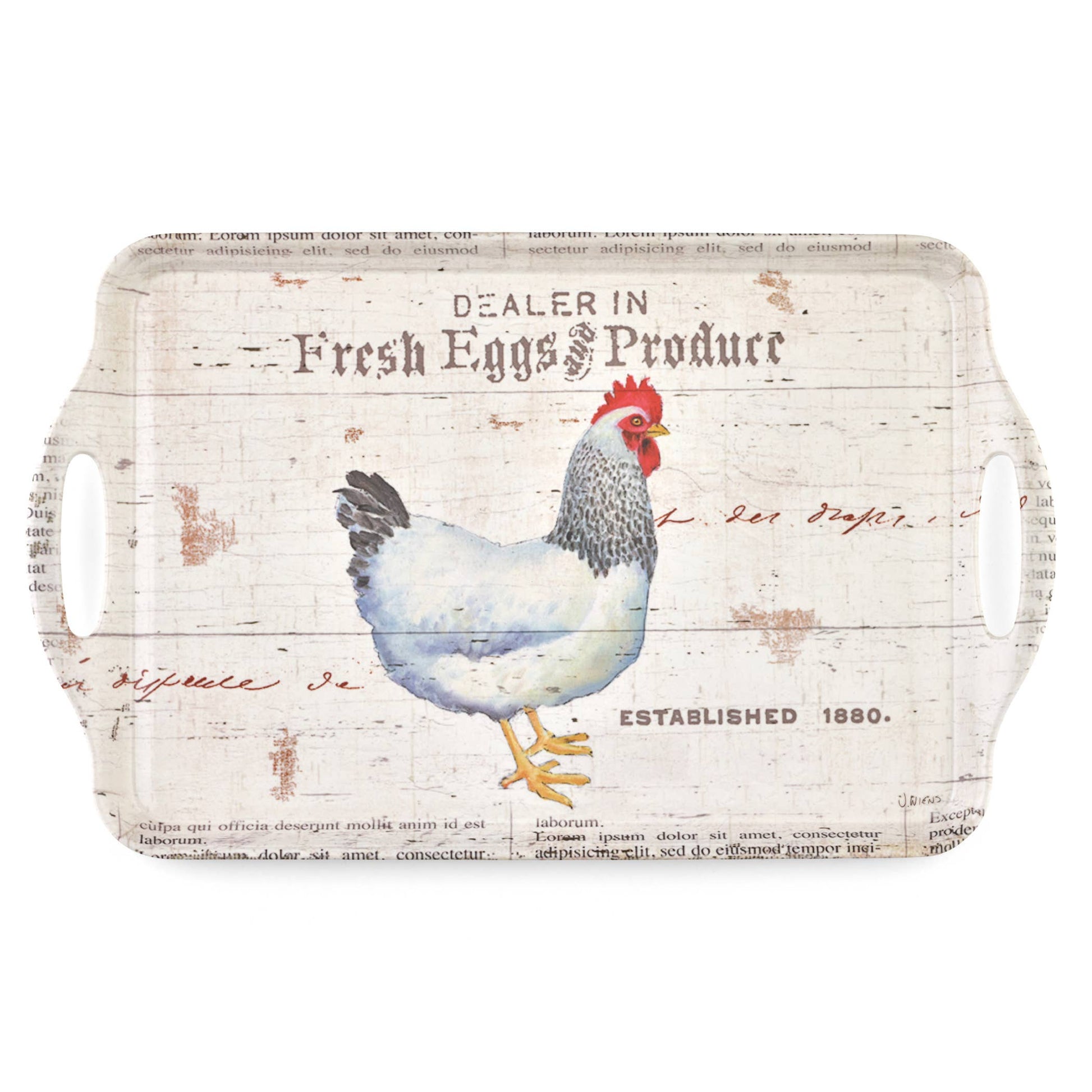 Sturdy melamine construction makes this large handled tray perfect for everyday use and entertaining. The charming "On the Farm" design brings rustic farmstand appeal to your table, evoking memories of fresh produce stands and country living. Pair it with matching placemats and coasters from our collection for a coordinated look. Durable enough for regular use yet attractive enough to display, this tray combines practicality with nostalgic style.