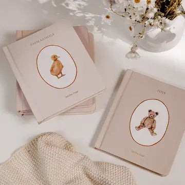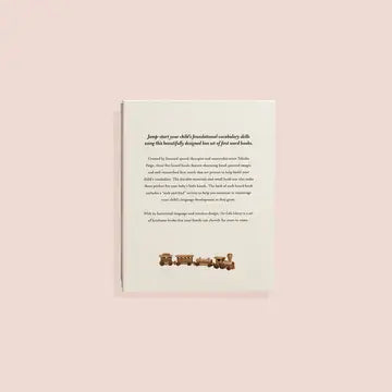 A premium boxed set of five first-word board books created by watercolor artist and speech therapist Tabitha Paige—designed to support early language development and inspire curiosity in babies 0–12 months. • Includes 5 board books covering Farm Animals, Forest Animals, Fruits & Veggies, Toys, and Transportation • Created by a licensed SLP to build foundational vocabulary through real-life imagery • Features durable pages sized perfectly for baby’s hands • Each book includes a “seek and find” activity for added educational value • Elegant, minimalist packaging ideal for curated nursery gifts and baby shower displays