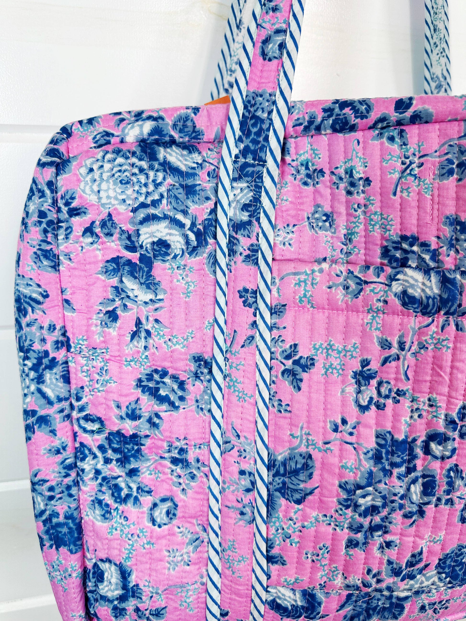 Quilted Duffle Bag | Cottage Floral Weekender Overnight Bag
