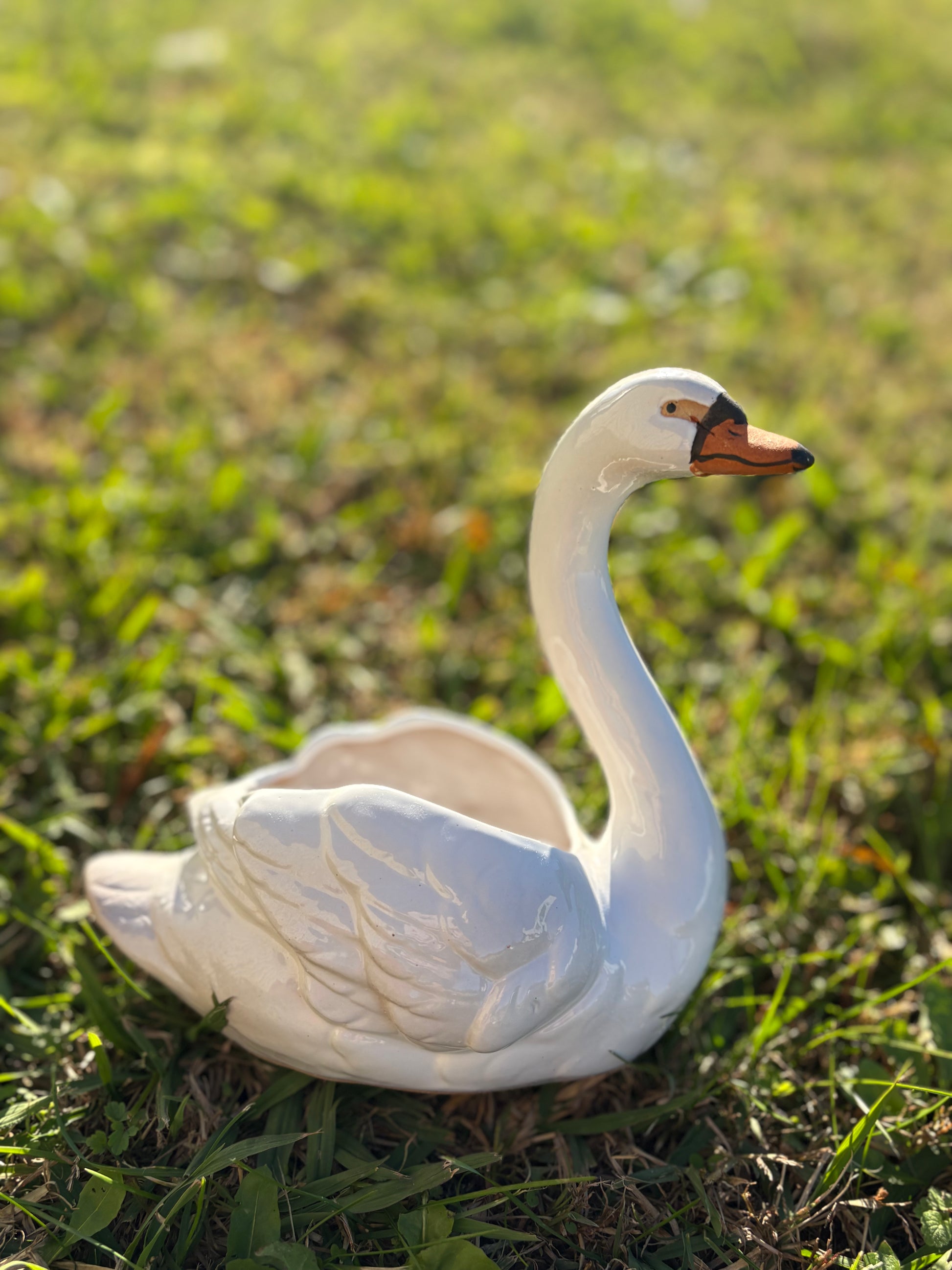 A graceful swan planter that brings timeless elegance to any space. This sculptural piece features refined proportions and a sophisticated silhouette, perfect for displaying succulents, small flowering plants, or decorative botanicals. The smooth, polished finish catches light beautifully, making it an understated yet striking accent for shelves, desks, or garden displays. An ideal choice for those who appreciate classic design with understated charm.