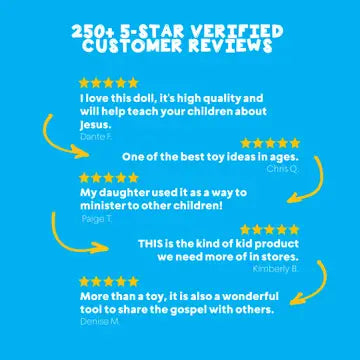 The Talking Jesus Doll is a beautiful 12" plush Jesus that speaks 10 phrases that Jesus said in the Bible. Jesus welcomes children with his outstretched arms, warm smile and a super-soft body. Children LOVE to squeeze his hand to make him talk. Parents and grandparents LOVE that their little ones are learning Jesus' important teachings from the Bible. Perfect for Christmas or for Christian Easter baskets. More than a toy, it opens up kids to Christ. Teach your kids before the World does.