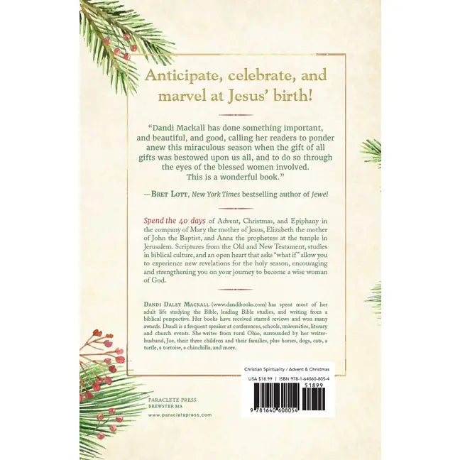 A beautifully packaged hardcover book with a ribbon marker and lovely interior. Anticipate, celebrate, and marvel at Jesus' birth with Three Wise Women, a richly researched and faith-building new devotional by Dandi Daley Mackall. You are invited to spend the 40 days of Advent, Christmas, and Epiphany in the company of Mary the mother of Jesus, Elizabeth the mother of John the Baptist, and Anna the prophetess at the temple in Jerusalem. We don’t hear many details directly from these three women at the heart of the first Christmas, but Scripture, studies in biblical culture, and an open heart that asks “what if” allows readers to experience new revelations for the holy season that will encourage and strengthen you in becoming a wise woman of God. If your customers have been watching "The Chosen" series, they will love this book!