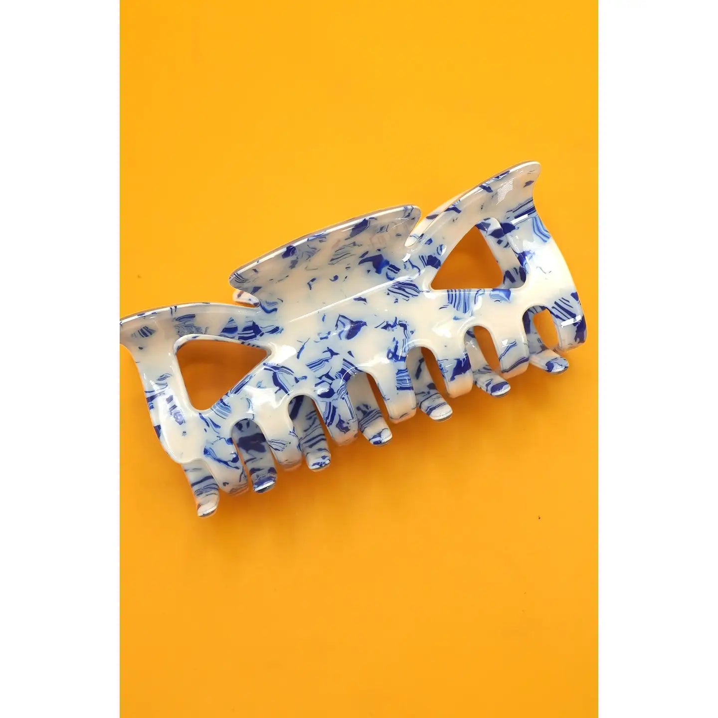 Vintage Porcelain Style Half Moon Hair Claw Clips. Featuring delicate porcelain-inspired toile pattern designs, these clips offer a secure hold while exuding vintage charm.