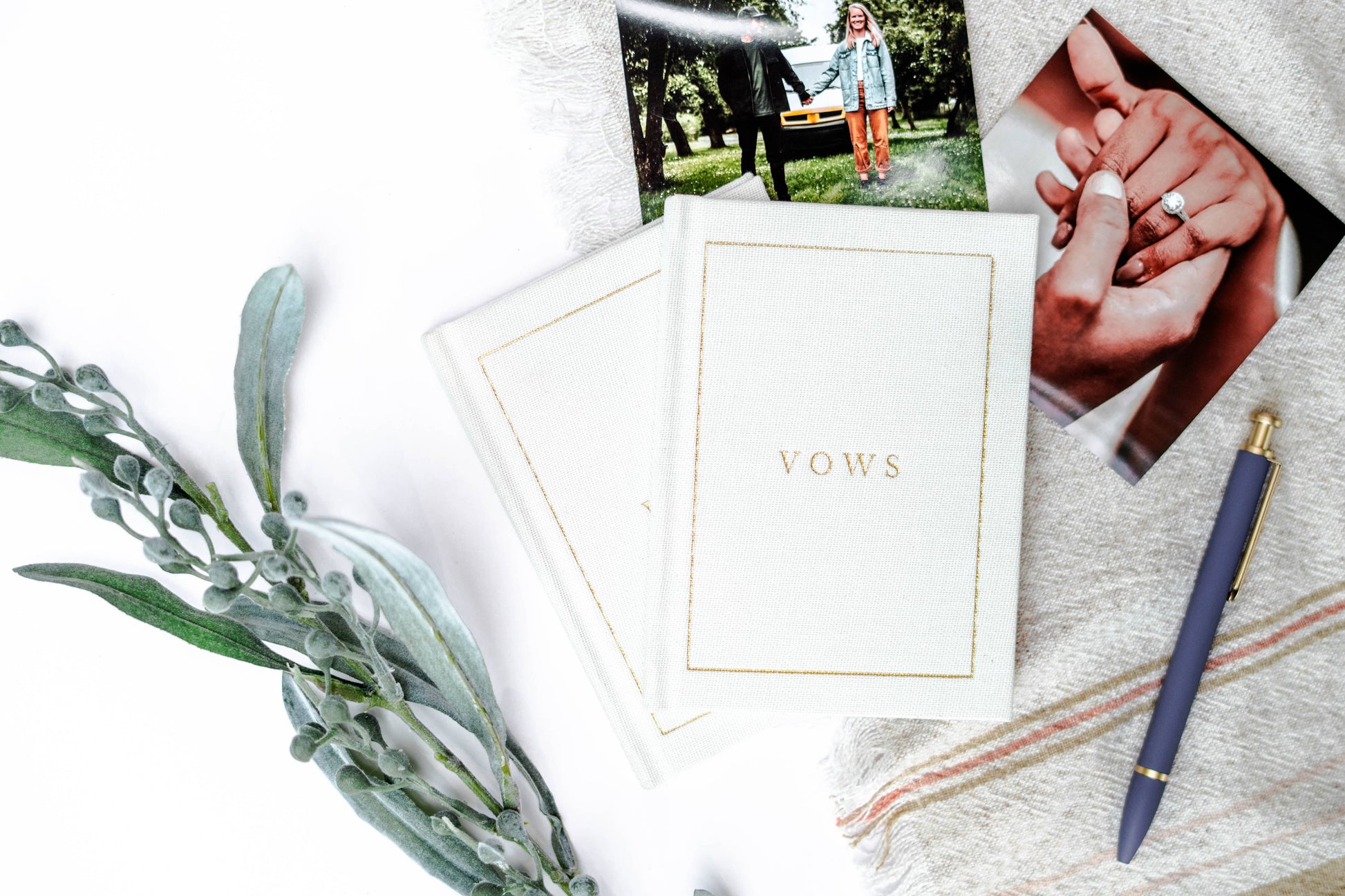 Preserve your wedding vows in timeless elegance with this sophisticated vow book, crafted to honor one of life's most meaningful moments. Featuring premium linen cloth adorned with gold foil detailing and acid-free pages designed to endure, this keepsake captures your promises in a format built to last generations. The compact 5.5 x 4-inch format with 20 pages per book and lay-flat spine ensures comfortable writing during your ceremony. Complement this treasure with our Engagement Journal to chronicle your pre-wedding journey, or our Anniversary Journal to document your shared milestones from year one through your 70th anniversary.