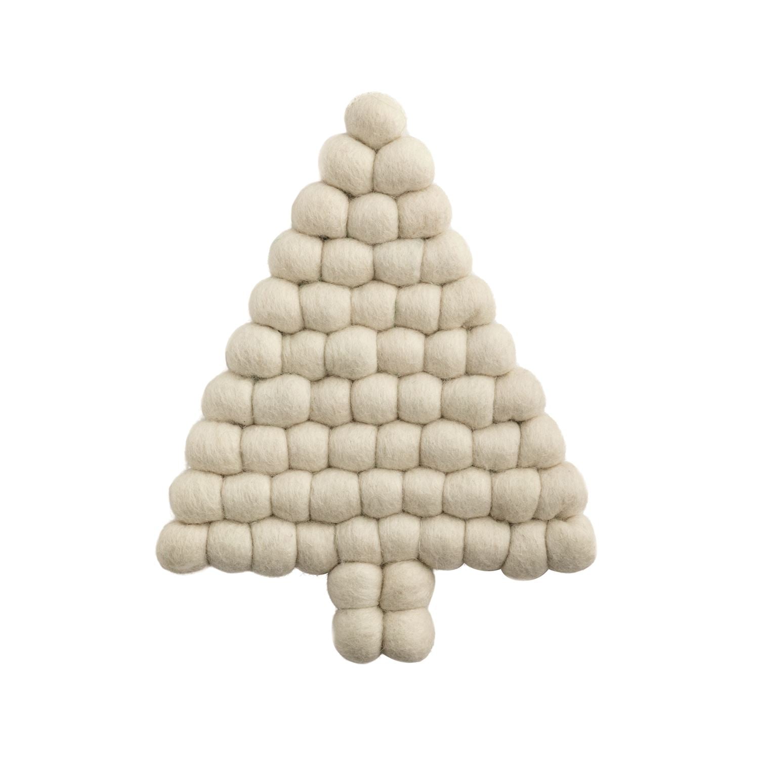 Crafted from dense, felted wool, the White Tree Felted Pom Trivet offers durable heat resistance and protects surfaces from hot cookware. Its tree-shaped design combines functionality with subtle sculptural appeal, making it a refined addition to any kitchen or dining setting. Light, yet sturdy, this trivet ensures safe handling of pots and pans while adding a touch of seasonal elegance to your tabletop.