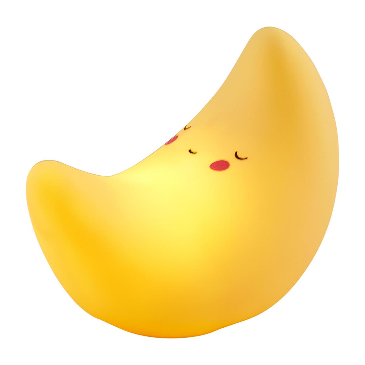 Featuring a sculptural moon silhouette, this plastic night light delivers warm, diffused lighting ideal for any bedroom or nursery. The design works equally well as a standalone accent piece on shelves or bedside tables. Pre-loaded batteries activate with a simple pull-tab mechanism—no cords or installation required. Its soft-touch construction makes it safe for children to handle, while the gentle illumination creates a calming atmosphere without harsh brightness.